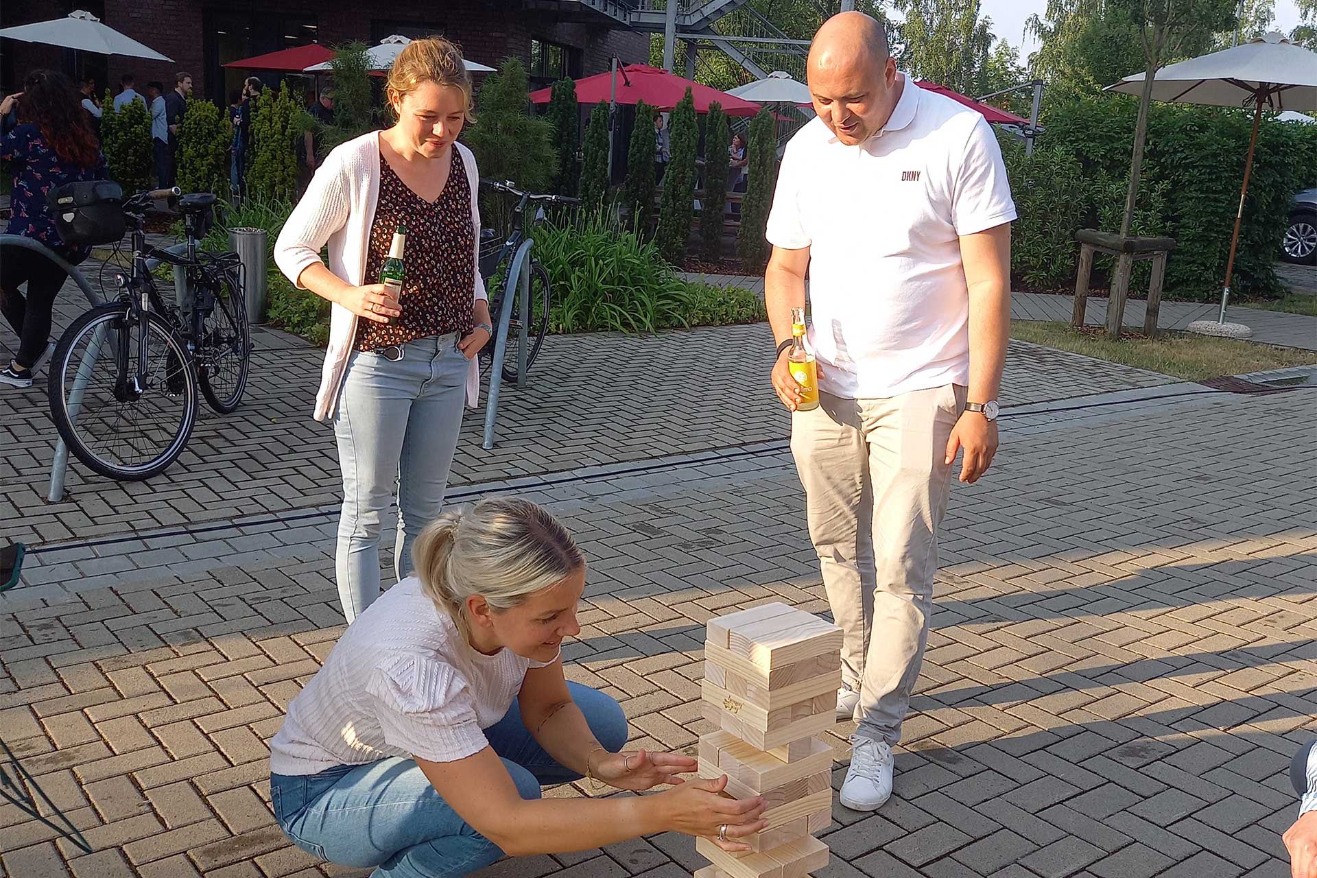 Im Programm der Veranstaltung richteten unsere Geschäftsführer Sven-Ove Wähling und Harald Lies den Blick zurück auf das vergangene Halbjahr bei Netzlink und stimmten die Netzlinge auf die zweite Jahreshälfte sowie unsere Ziele und Fokusthemen für den Rest des Jahres ein. Im Mittelpunkt standen dabei Neuerungen in der Organisation für eine noch effizientere Zusammenarbeit. Im Anschluss gaben die Teamleitenden unseres IT-Service-Bereichs einen Überblick über Umstrukturierungen in ihren Teams und der Vertrieb berichtete von aktuellen Kundenprojekten.